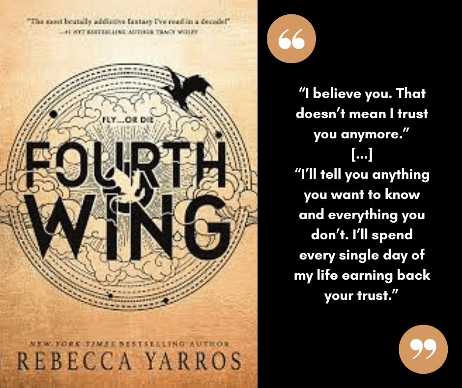 If you like fantasy, Fourth Wing is a mix of The Hunger Games and Divergent WITH DRAGONS. Snarky dragons that bond to riders they choose after some treacherous games and challenges. Violet is the daughter of a General, originally tracked to be a scribe and then pushed at the last minute to the rider faction by her mother. Violet’s whole family is an interesting story to delve into more. She also has a disease that sounds a bit like Ehlers-Danlos (weak joints and bones) and is small but has determination in spades. It is refreshing that Violet doesn’t view her disability as a hazard nearly as much as some of those around her. She knows her limitations and works around them or through them, using the skills she does have to succeed.