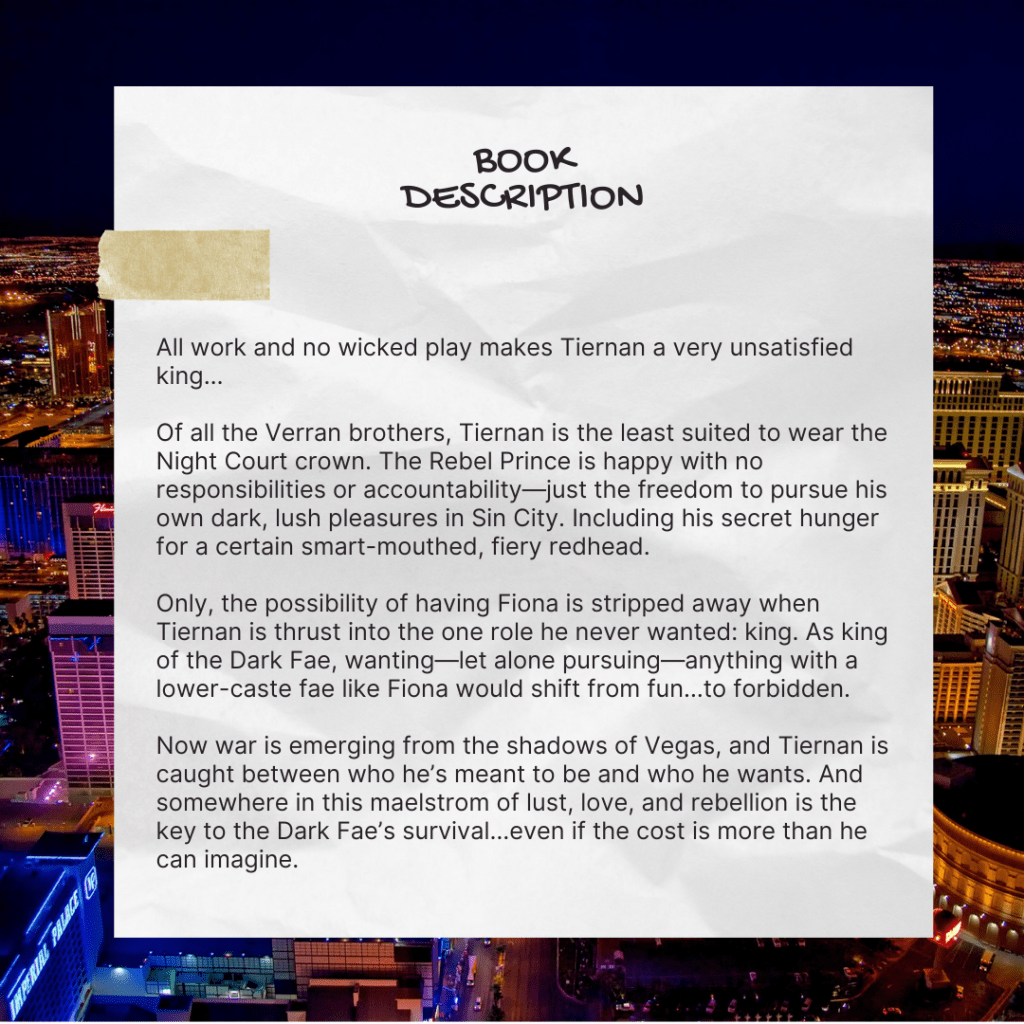 Tiernan is on his way to becoming King after his brother’s abdication. Which is not what the self-styled rebel ever wanted to do. Leading was not his style. Until it had to be. And to top it all off, he is very much trying to sort out what to do about his feelings surrounding a certain housekeeper named Fiona Jewel. Not only do they have a fierce physical attraction, but they also have a building, somewhat inconvenient love for each other as well. And there are a whole host of issues that come up along the way to figuring out their relationship. Issues that include busybody council members, what Kings “should” do to preserve the bloodlines and power hierarchy, communicating needs around BDSM activities, and one persistent Light Fae villain in Edevane. Who is beginning to pop up everywhere to wreak havoc and drop information bombs left and right.
