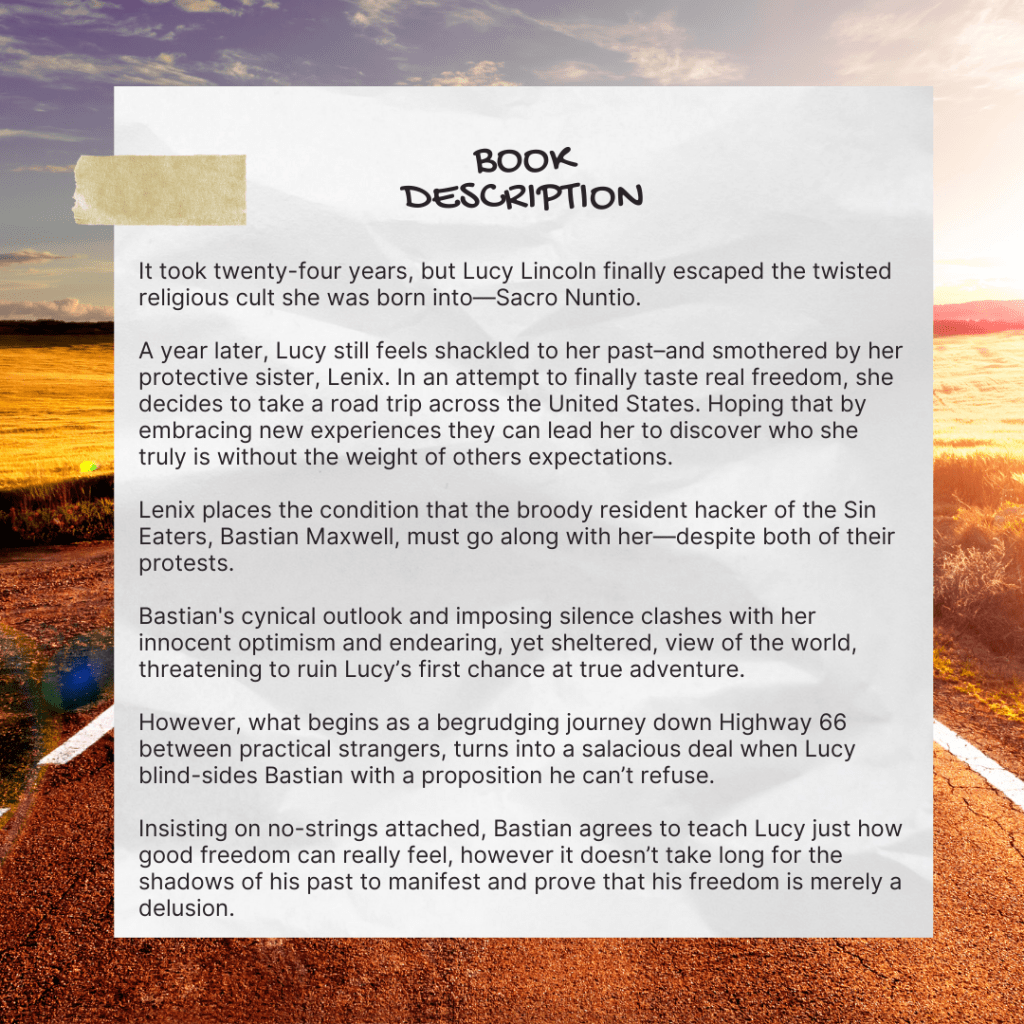 These two wounded souls are thrown together on a road trip, Bastian as the grumpy paid babysitter to Lucy. Lucy wants a chance, finally, to do things on her own without someone telling her what is allowed. And somewhere between bucket lists, kitschy tourist attractions, and roadside motel rooms, these two find a lot more than either of them bargained for.