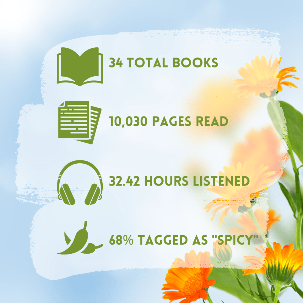 Sweet Vengeance, Behind the Net, and The Anti-Hero were all close in the favorites race for this month. They were all spicy romances with a lot of heart and nuance and emotional stakes that hit all the right notes. I think of all the books read, Cruel Summer was the biggest disappointment, based on what I had been seeing all over social media. Although I may just not be a Morgan Elizabeth person, this is the second book I have read of hers that did not seem to land (for me). Also, there were a surprising amount of typos and issues with the book. Normally, for indie authors, I give a pass to some degree of grammar/typo issues due to the nature of the publishing process, but this author has a ton of books published already, so this level of typo/grammar problems is a bit concerning. Not to mention, the “Mean Girls” plotline and anemic character development left a lot to be desired. Again, for me. I know reviews and opinions on books are highly subjective. Although it did put me off from trying to seek out her books in the future.