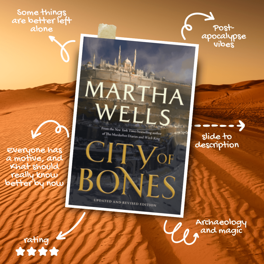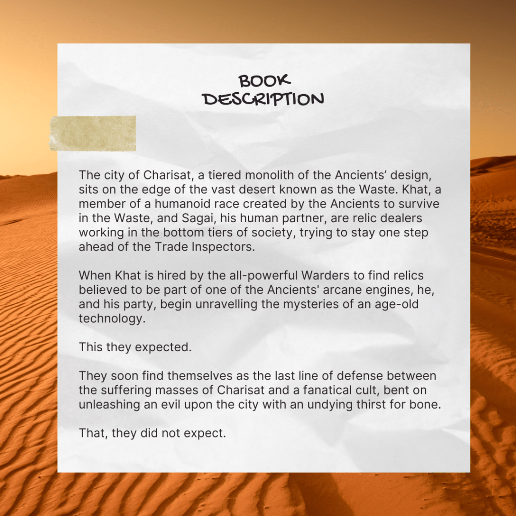 What I loved most about this book is the world-building. On every page, I could feel myself in the dusty streets of Charisat or in the vast danger that is the Waste. Everything felt real, lived in. The pacing was slow but never dragged. You are pulled along for the ride, following the tenuous breadcrumbs and wondering if anyone would make it out the victor. The small wins were often immediately overshadowed by crushing defeats. New threads of information were continually meted out, but it never felt like exposition. It all fits into the greater narrative and almost felt as if you could hear this story told over a campfire as if it were someone recalling a history of the world.