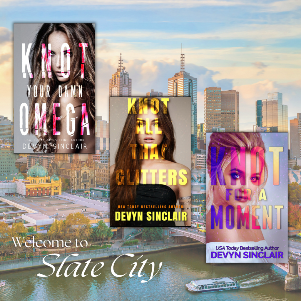 I first found her Slate City series last year. All of the books are excellent. They each feature an FMC that is dealing with struggles both internal and external. In the case of Knot Your Damn Omega and Knot All that Glitters, a large part of the issue stems from family expectations. In all the books, the omega females are scent matched to their packs, and the books spend time with each member, building each relationship, and guiding us along as the FMC learns just how much she is worth and how much she is loved by her pack.
