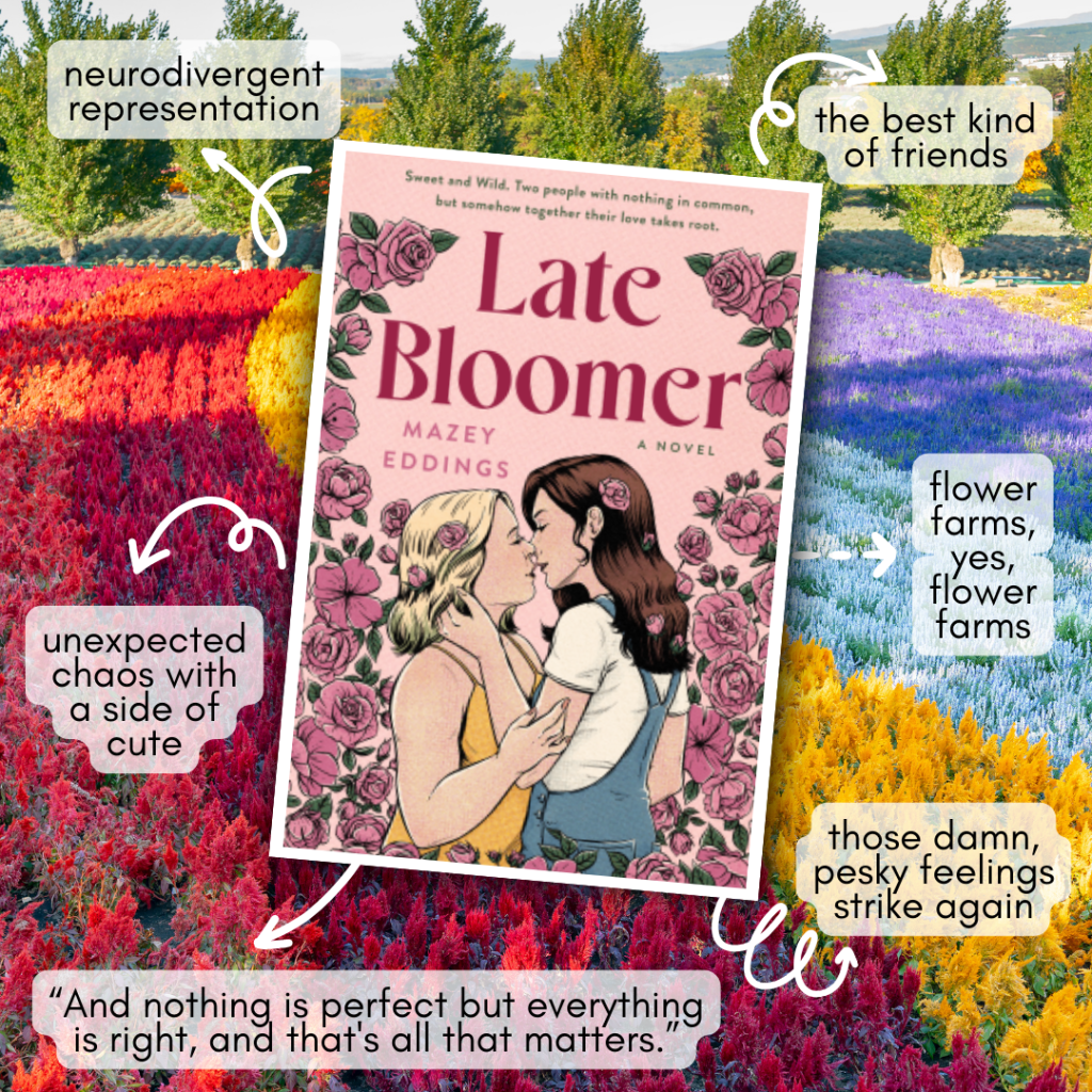 The relationship was handled with such care, and it was refreshing to see something so real, raw, and beautiful unfolding between Opal and Pepper. Their hesitance with each other, and the nuance of both of their neurodivergent personalities, made the stakes feel real and alive. I loved the references to movies and music and the absolute delight our two protagonists found in making the other happy. The flower farm setting, Opal’s artistic endeavors, and the family and emotional baggage that they both work through, all of it is a means to see these two women bloom into versions of themselves that they need to be. Both individually and together.