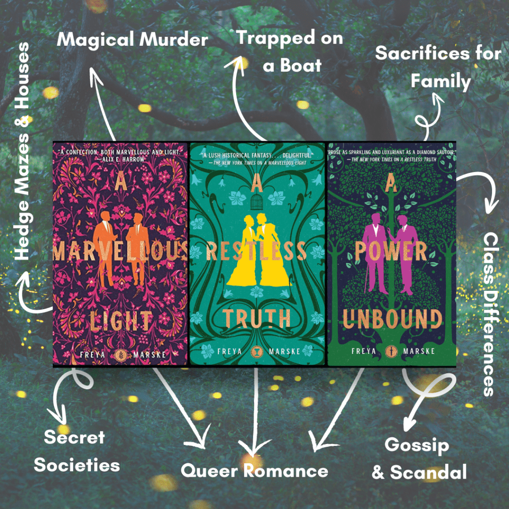 Sharing a book series I finished earlier this year, the Last Binding trilogy by Freya Marske. Book 1 is A Marvelous Light. Book 2 is A Restless Truth. Book 3 is A Power Unbound. They shoudl be read in order, because while each couple has a complete story, the overall story takes place over – and involves – all three books. But the commitment to the series is worth it.