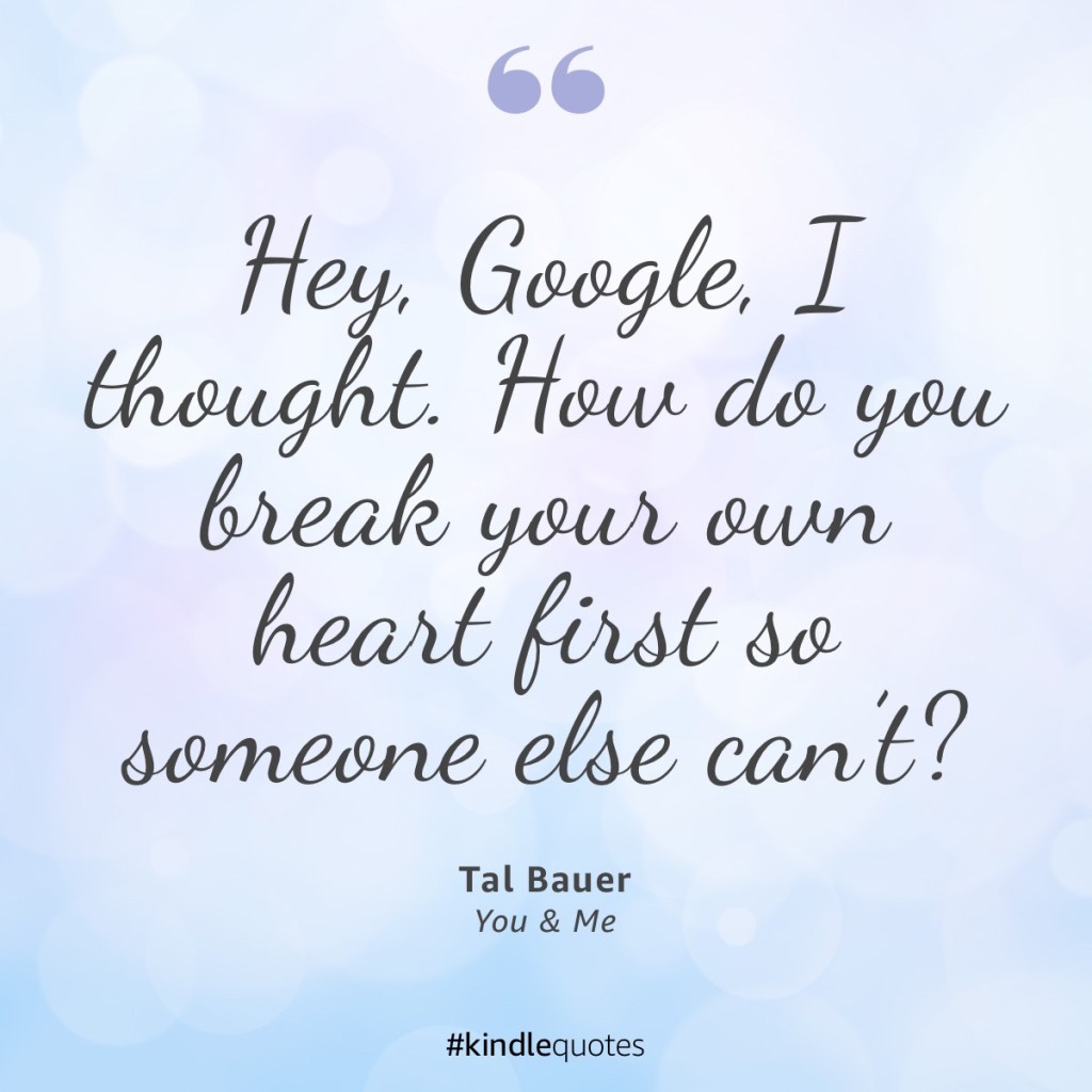 I admit, I have not read the backlist of Tal Bauer in its’ entirety. I have read all the sports romances (and How to Say I Do). And in those stories, I have found nothing but aching, pining, and a version of TX that I actually don’t mind reading about. My first book was Gravity (go hockey!), and my favorite to date is probably You & Me (Later in life bi-awakening football dads. Trust me, it works). The two quotes below are from that book. Tal has a way to create yearning in what at first glance feels like a mundane description.