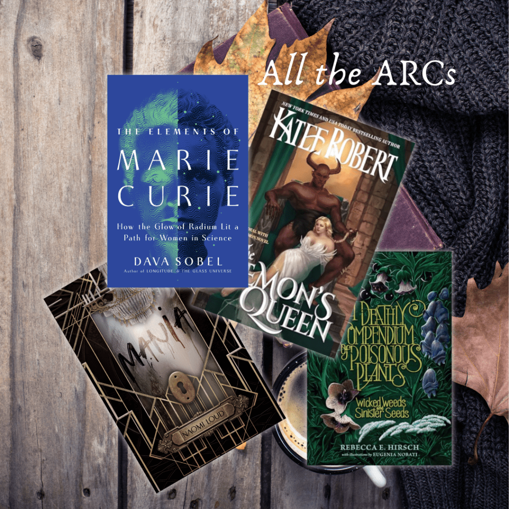 On tap for October are more ARCs (super excited for The Consulate by Allison Carr Waechter, which I am reading now). And a previous ARC comes out in a couple weeks, Wicked & Wildflower by Sarah A. Bailey. Love that one, and a full review is coming soon.