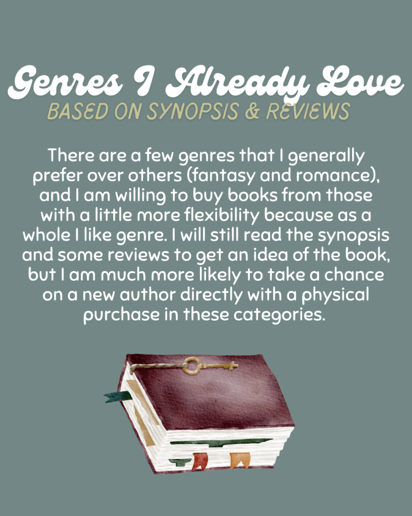 What I’ve come up with mostly comes down to only purchasing bookshelf copies of books I have already read and loved, books from authors that I consider “auto-buy,” and books that are recommended by people I trust.