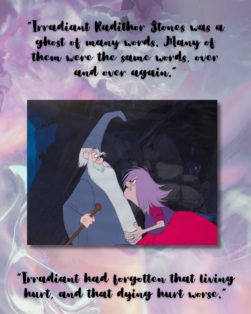 Stripes and Duantri are along for the ride with Lanie, along with other characters from the first book (both beloved, not beloved, and mysterious). We also meet new ones with their own terrifying abilities. As a whole, I adore this book and Lanie’s journey. The writing gives hints of Jonathan Strange and Mr. Norrel (in humor and footnotes/annotations). It also at one point reminded me very much of the magic battle between Mad Madam Mim and Merlin from the Sword in the Stone animated movie. Even in the slower moments, we are propelled along to see just how much Lanie and the others can work together to see if they can best Irradiant Stones and at least set a few past grievances aright.