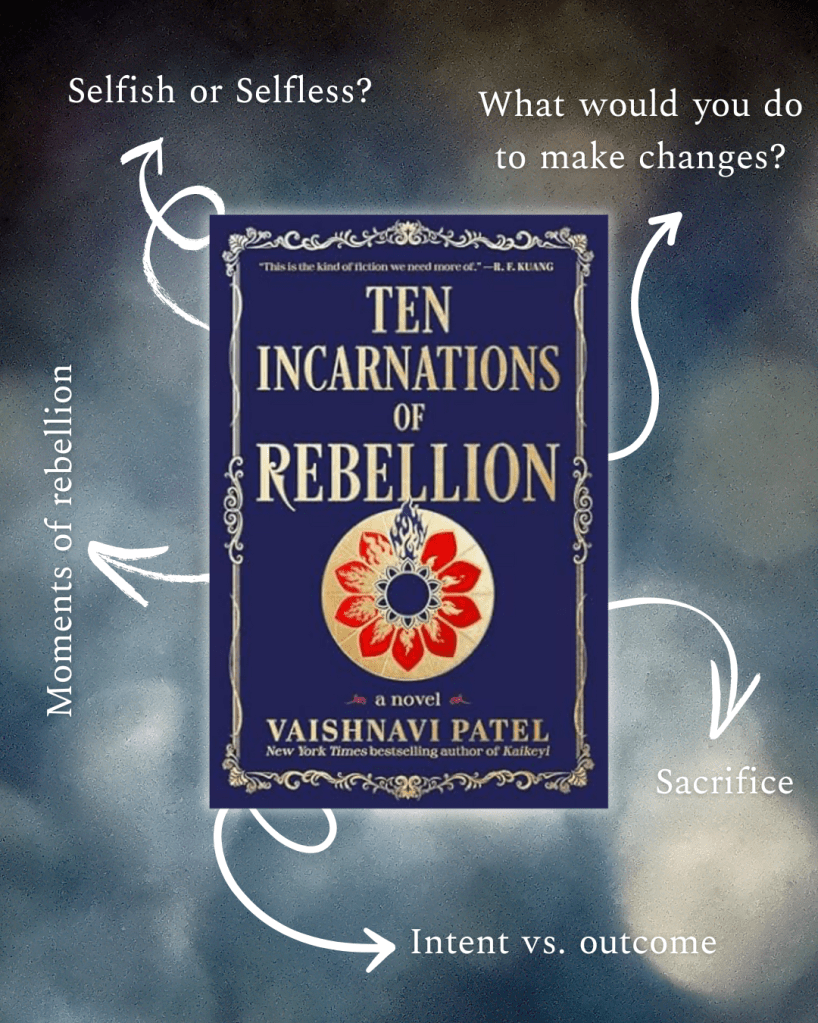 If you liked Babel by R.F. Kuang, or V for Vendetta, Ten Incarnations of Rebellion weaves a related story. One of an alternate history of India where the British manage to hold on to their colonial rule. Where they – as any colonizing force in history does – take a patronizing stance toward those they subdue in the name of “this is better for them than what they were doing on their own before we came to help them find the light.” Not a quote, that line, but more a sentiment.