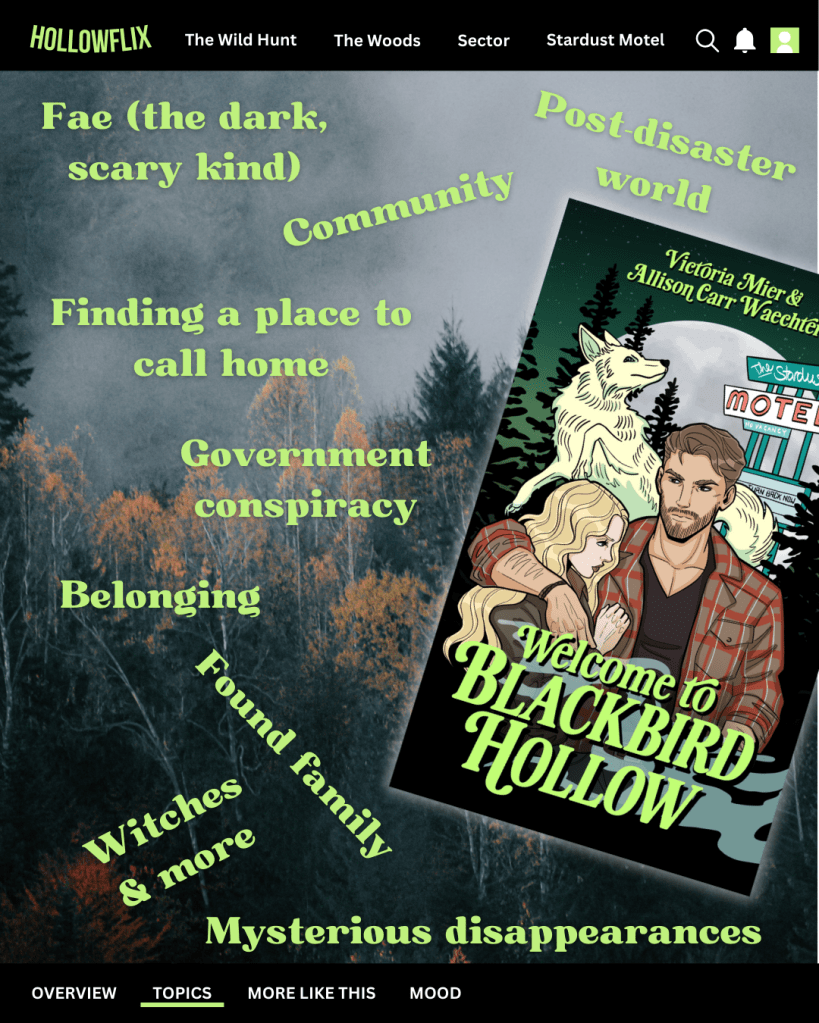 Welcome to Blackbird Hollow is the world we get when two amazing authors come together and create a story that has a bit of everything that I love in it. This world reads as if Stars Hollow and Twin Peaks and Wayward Pines all came together in a world with the scary kind of Fae and dubious government agencies. We get to explore a world that reads a bit dystopian/alternate history, full of folklore and conspiracy and a whole lot of unanswered questions. Blackbird Hollow is a place that attracts people who belong – who are willing to become part of the community – and is built upon legacy and survival.